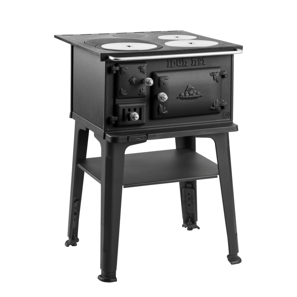 1930-talets mest sålda vedspis, Idun No 1, tillverkar vi på Josef Davidssons än idag. Stommen till Idun no 1 gjuter vi på ett gjuteri i Danmark och samtliga plåtdetaljer tillverkas lokalt, med montering för hand i småländska Reftele. Innanför eldstadsluckan har vi använt den senaste förbränningstekniken och tack vare den traditionella stilen passar det att installera spisen i alla typer av kök, även i stugor. Spisen har dessutom en stor bakugn där taket är klätt med en 15 mm täljstensskiva för jämnare ugnstemperatur och längre värmehållning. Fyller du ugnen med en täljstenssats håller den värmen en hel natt. Du öppnar och stänger luckorna smidigt med fjäderlås och uteluften reglerar du med ett vred. Spisen levereras med planslipade kokplattor för bästa värmelagring och matlagningsmöjlighet. Spisringar i traditionellt utförande finns som tillval
