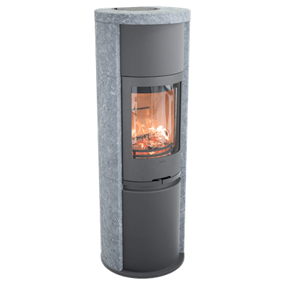 En större kamin ger större effekt, det vill säga mer värme, än en mindre. Det finns också bra sätt att få ut ännu mer värme ur sin braskamin. Täljsten är ett naturligt värmelagrande material. Med omramning i täljsten håller sig kaminen varm flera timmar efter att glöden slocknat. Täljstenen har unik, naturlig ådring som gör att ingen kamin är exakt lik en annan. Kaminen kan kompletteras med värmelagrande Powerstone.