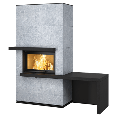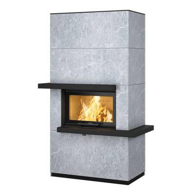 Med insatsen i31T, klädd i naturligt värmelagrande täljsten, får du extra god värmeekonomi. Den värmelagrande täljstenen har en naturlig mönstring, inget exemplar är det andra likt. Eldstaden kan också kombineras med värmelagrande Powerstone under höljet.