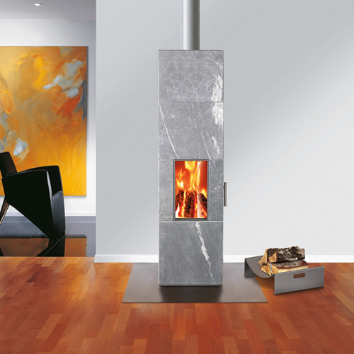Kamin modell med prisbelönt design, utrustad med finsk natursten. Varje kamin har sin egen prägel. Fantastiska egenskaper eftersom det är en konvektionskamin som snabbt alstrar värme och har ett stenhölje som håller kaminen varm i sex-åtta timmar efter att förbränningen upphört.